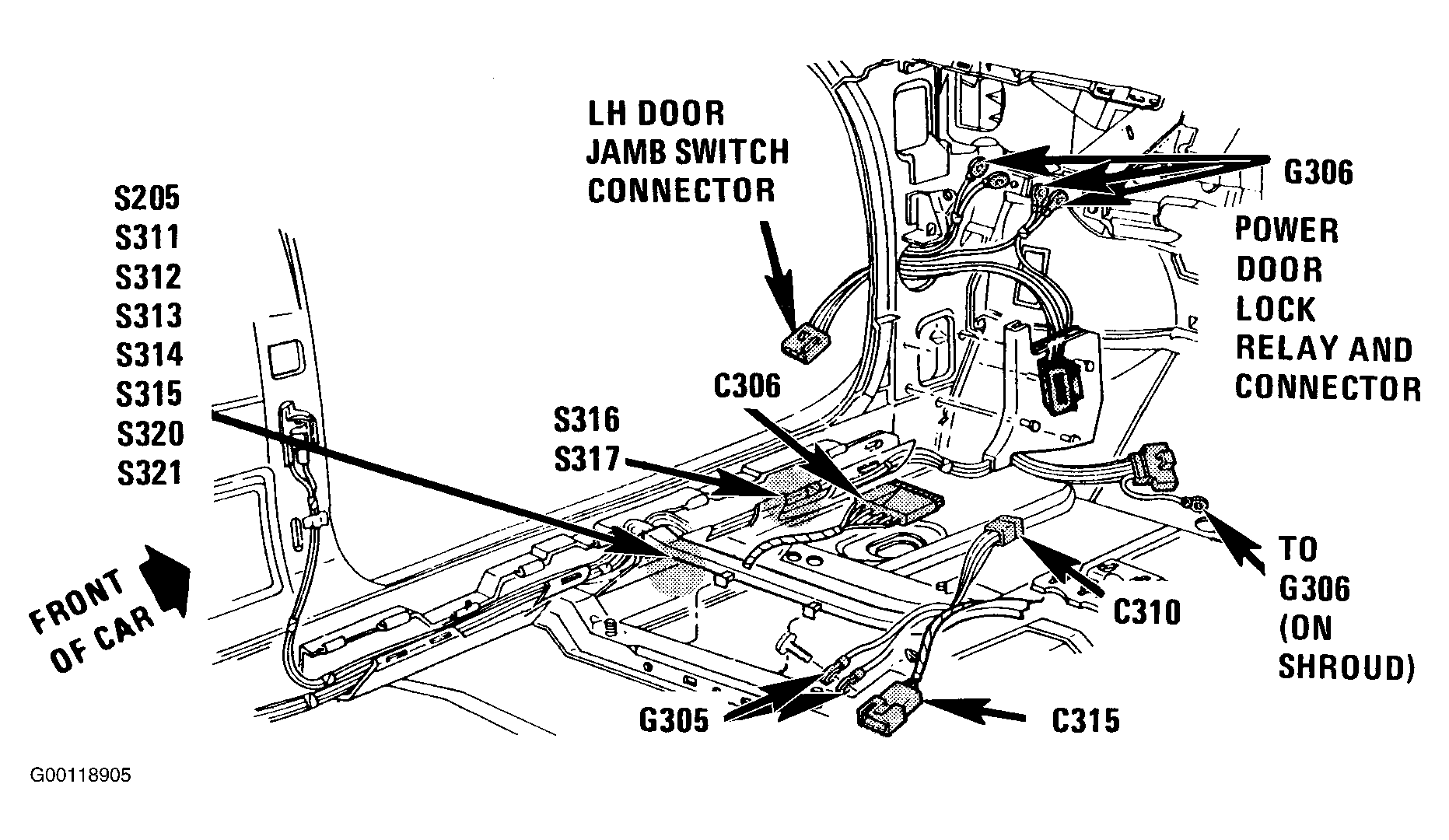 | G310 | Behind Rear Seat, On Right Diagonal Brace. See Fig 1 . |