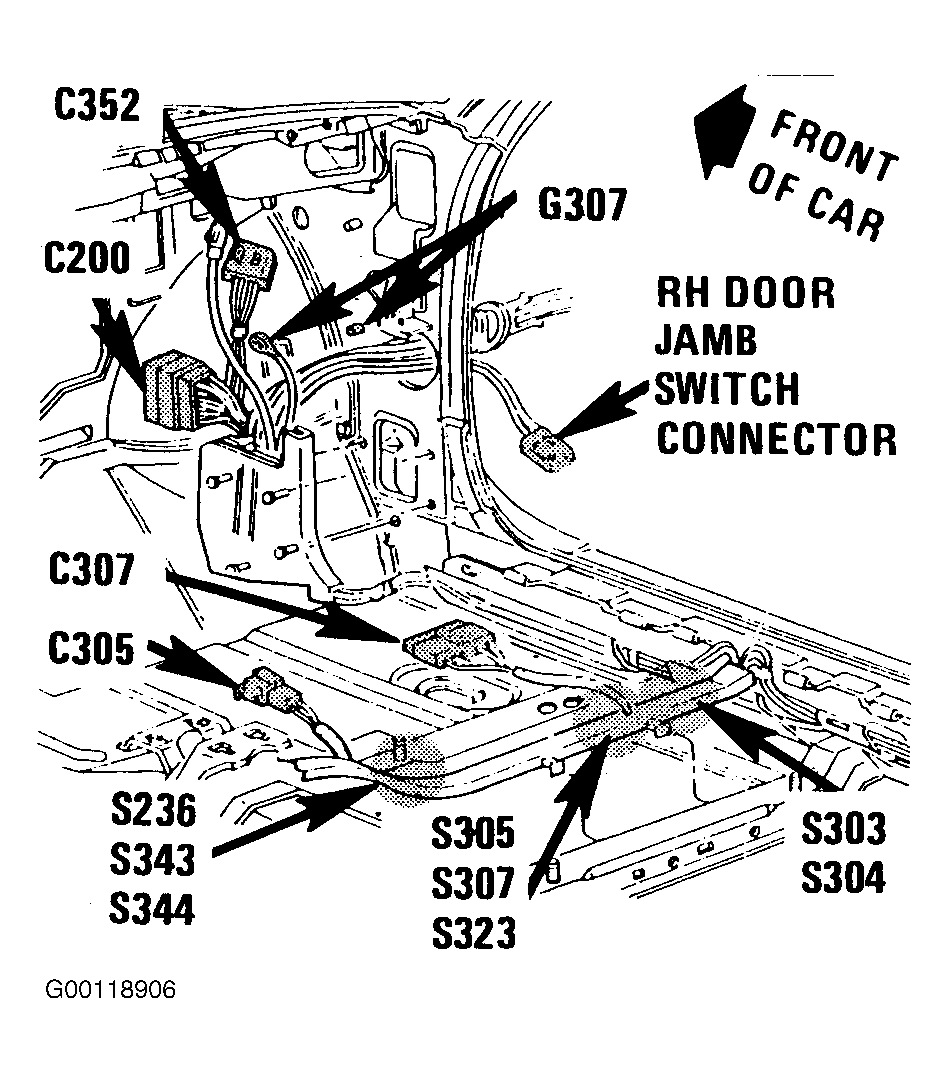 | C200 (56 Cavities) | Behind Right Side Of Instrument Panel, Near Shroud. See Fig 13 and Figure . |