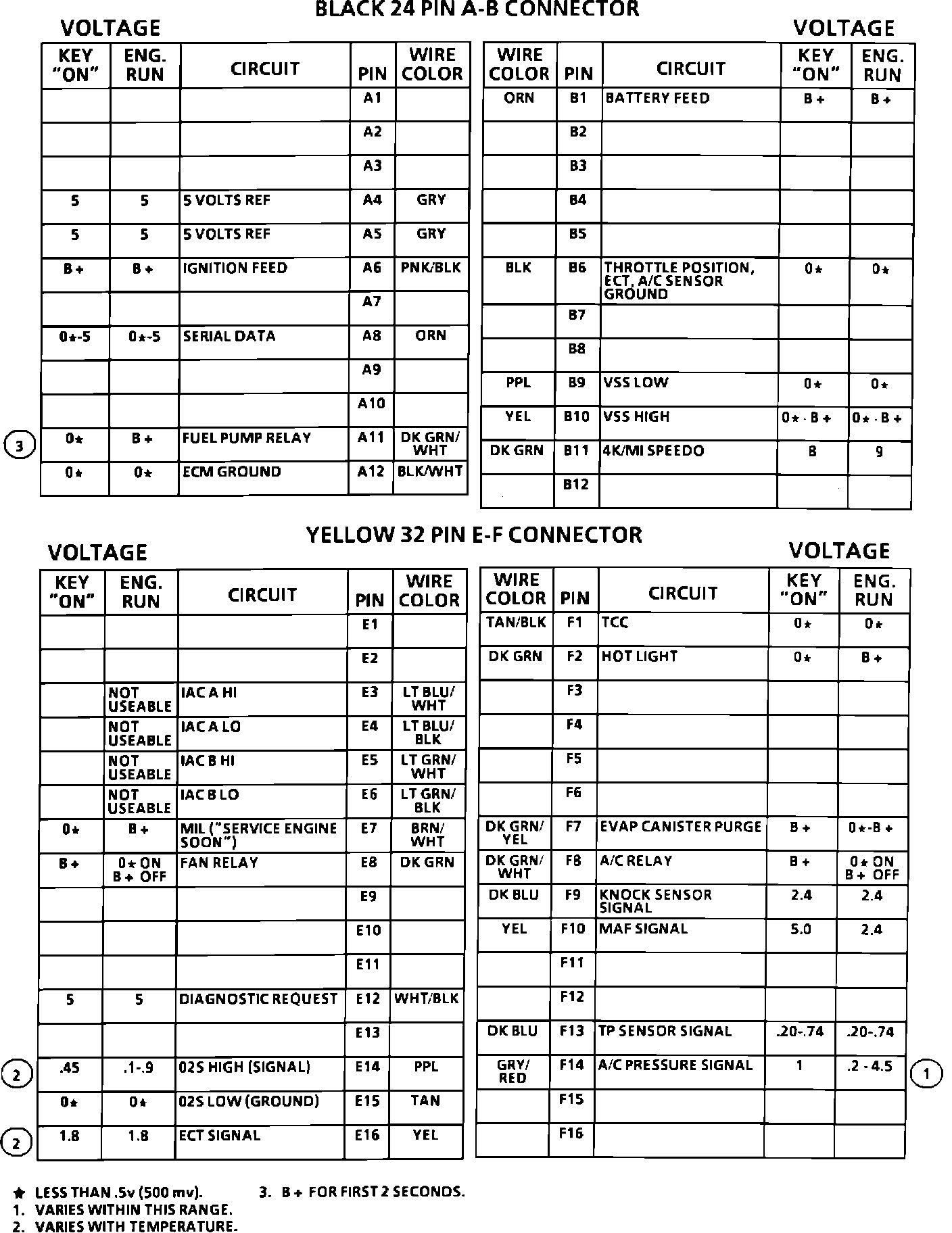 ECM Black 24 Pin A-B & Yellow 32 Pin E-F Connectors: