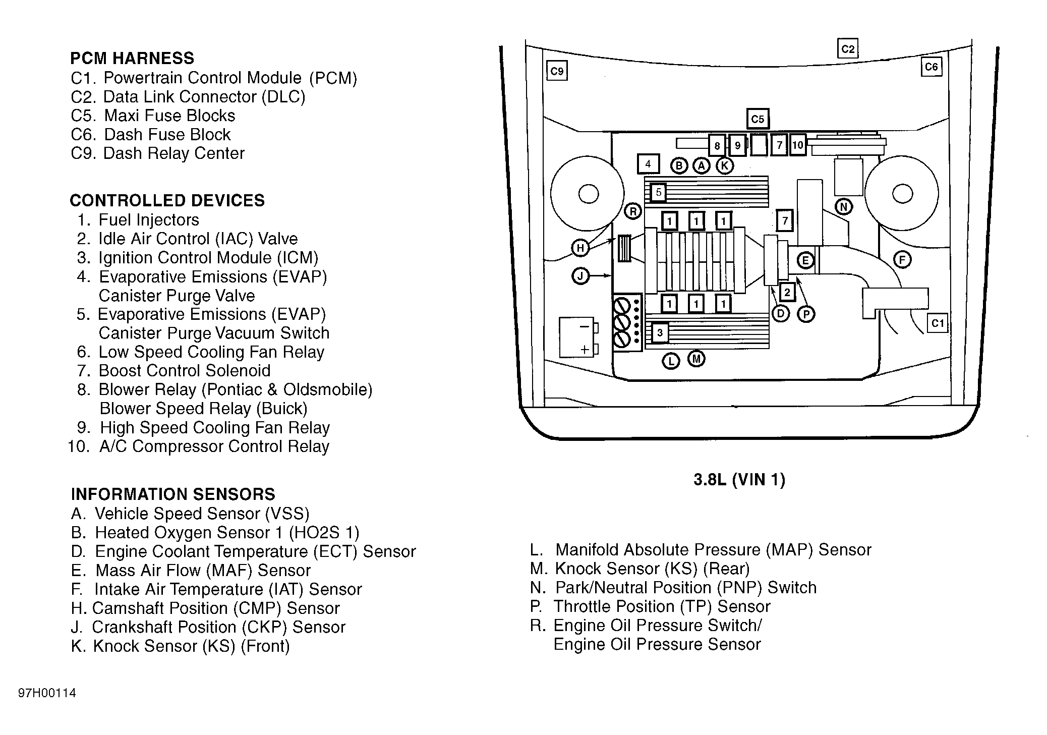 | Powertrain Control Module (PCM) (3.8L VIN K) | On left front corner of engine compartment. See Figure . |
