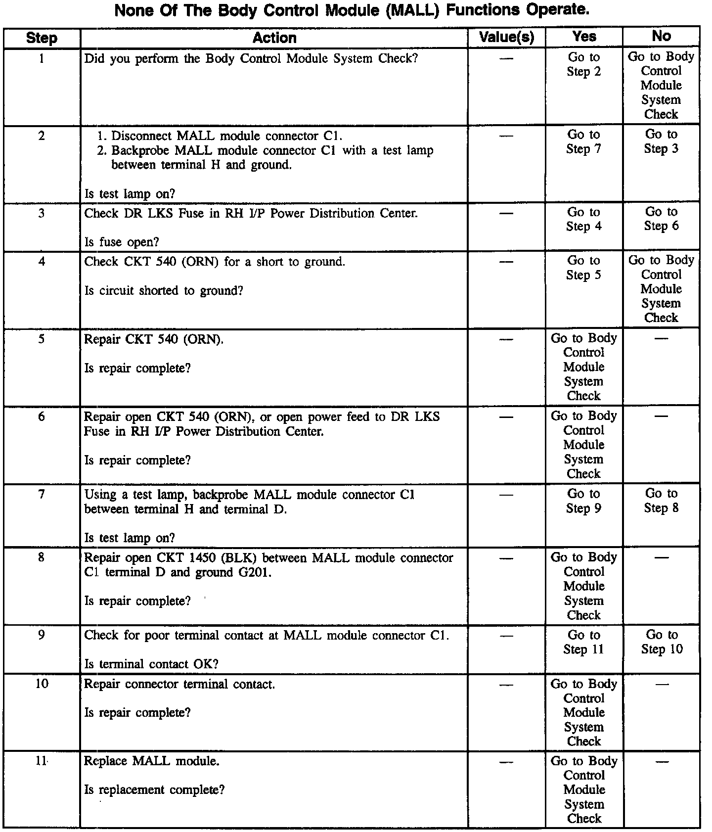 None Of The Body Control Module (MALL) Functions Operate: