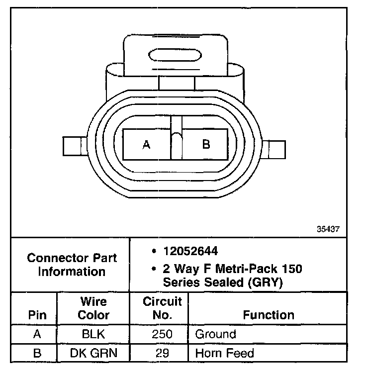 Connector end views show the cavity or terminal locations for all the related 2-pin or larger connectors shown in the system schematic(s). The drawings show the connector's face as seen after the harness connector has been disconnected from a component or mating connector. Unused cavities are left blank in the table.