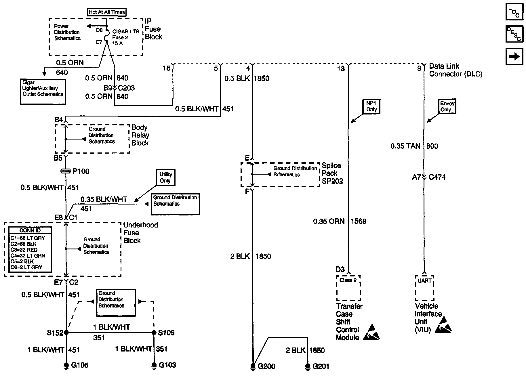 Data Link Connector (DLC) Schematics: Power, Ground, Transfer Case Shift Control Module And Vehicle Interface Unit (VIU):