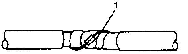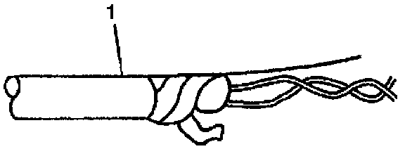 1. Remove the outer jacket (1). Use care not to cut into the drain wire of the mylar tape.