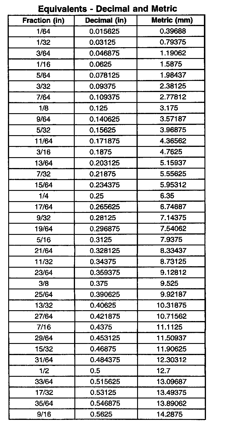 Equivalents - Decimal And Metric (Part 2 Of 2):
