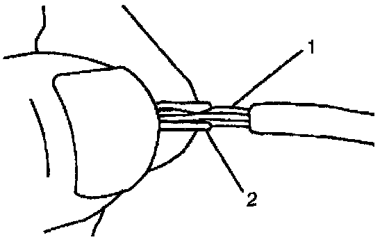 6. Overlap the two stripped wire ends and hold them between thumb and forefinger.