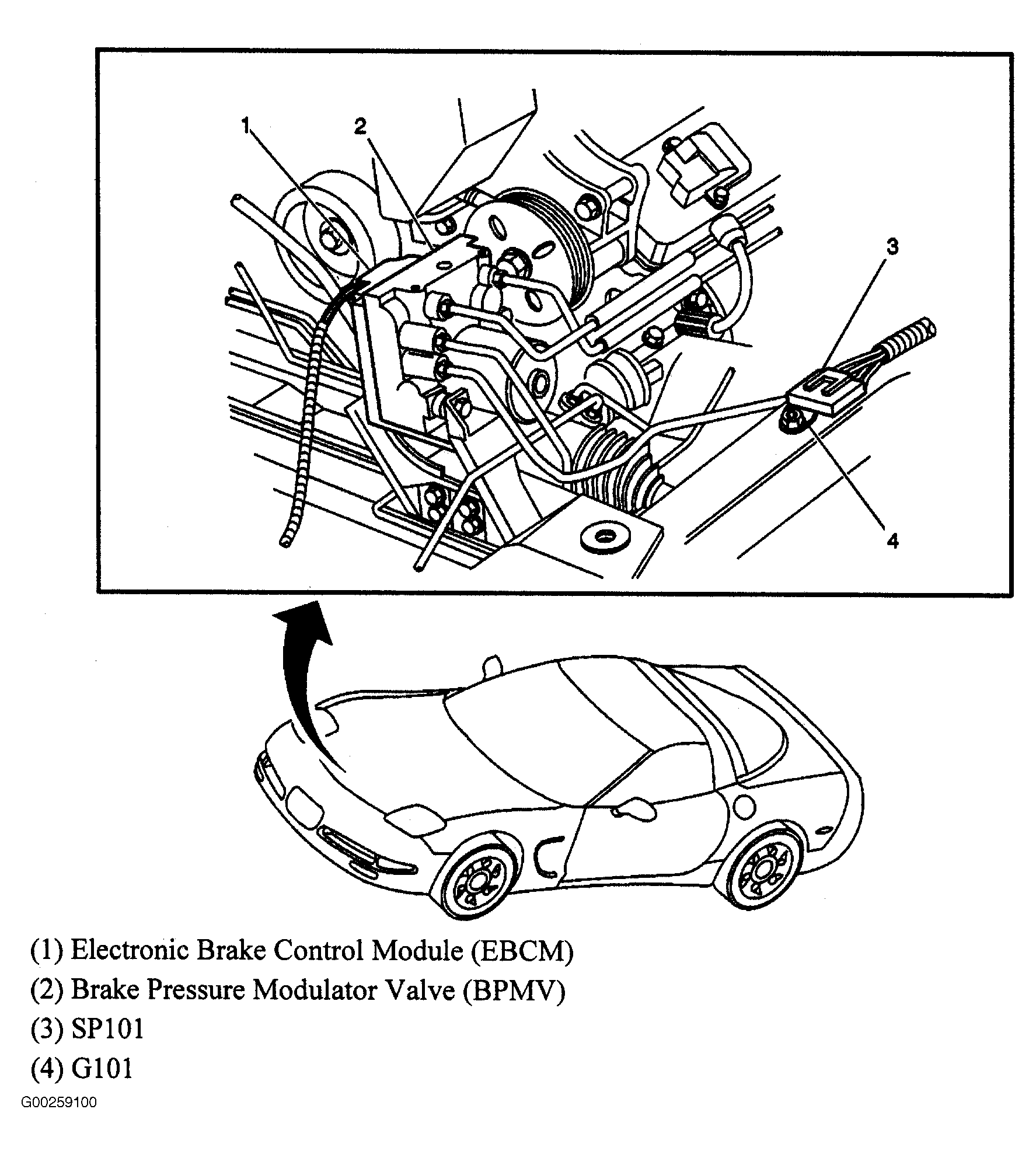 | Electronic Brake Control Module (EBCM) | At left front side of engine compartment, on frame rail. See Figure . |