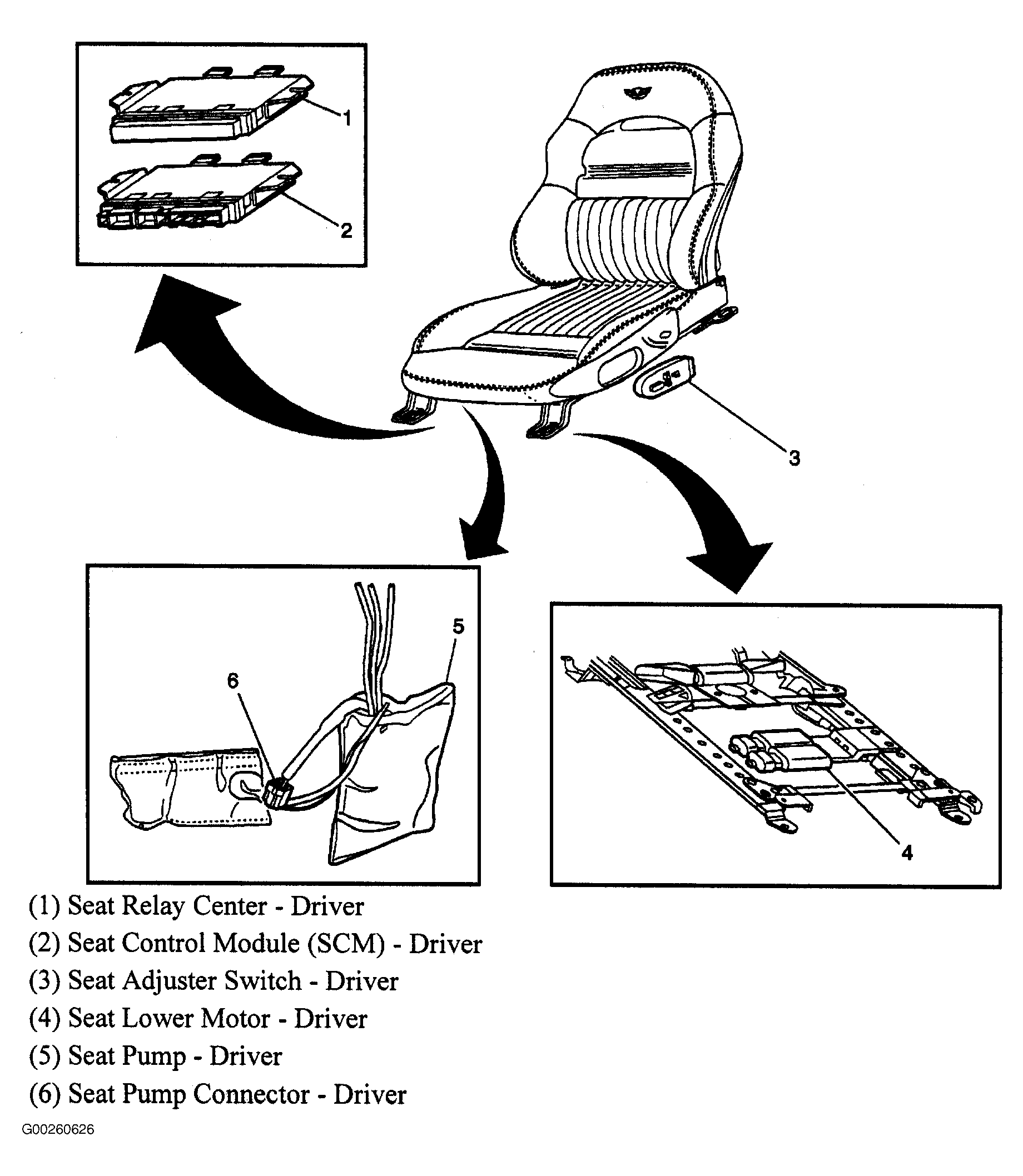 | Seat Control Module (SCM) (Driver) | Under driver seat. See Figure . |