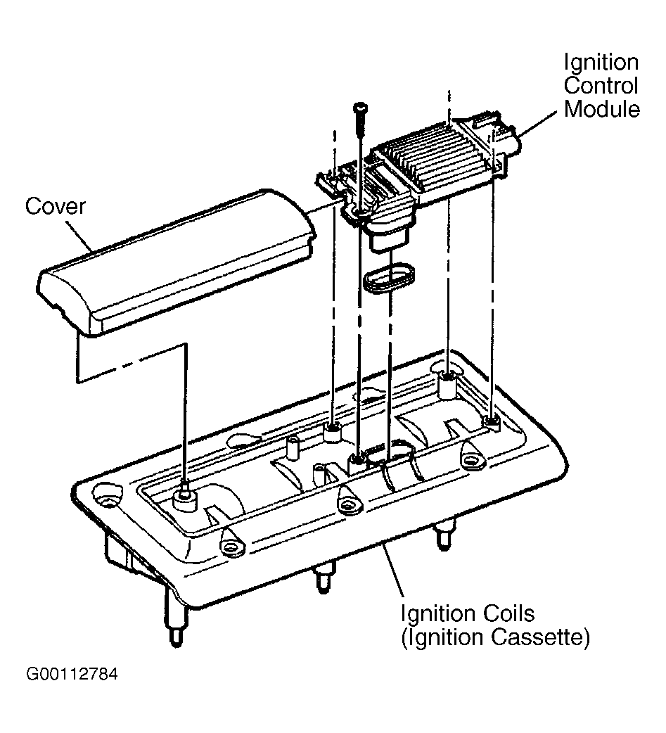 Turn ignition off. Disconnect the electrical connector from the Ignition Control Module (ICM). See Figure. Remove the cover from the ignition coils. Remove the screws retaining the ICM. Remove the ICM. To install, reverse removal procedure.
