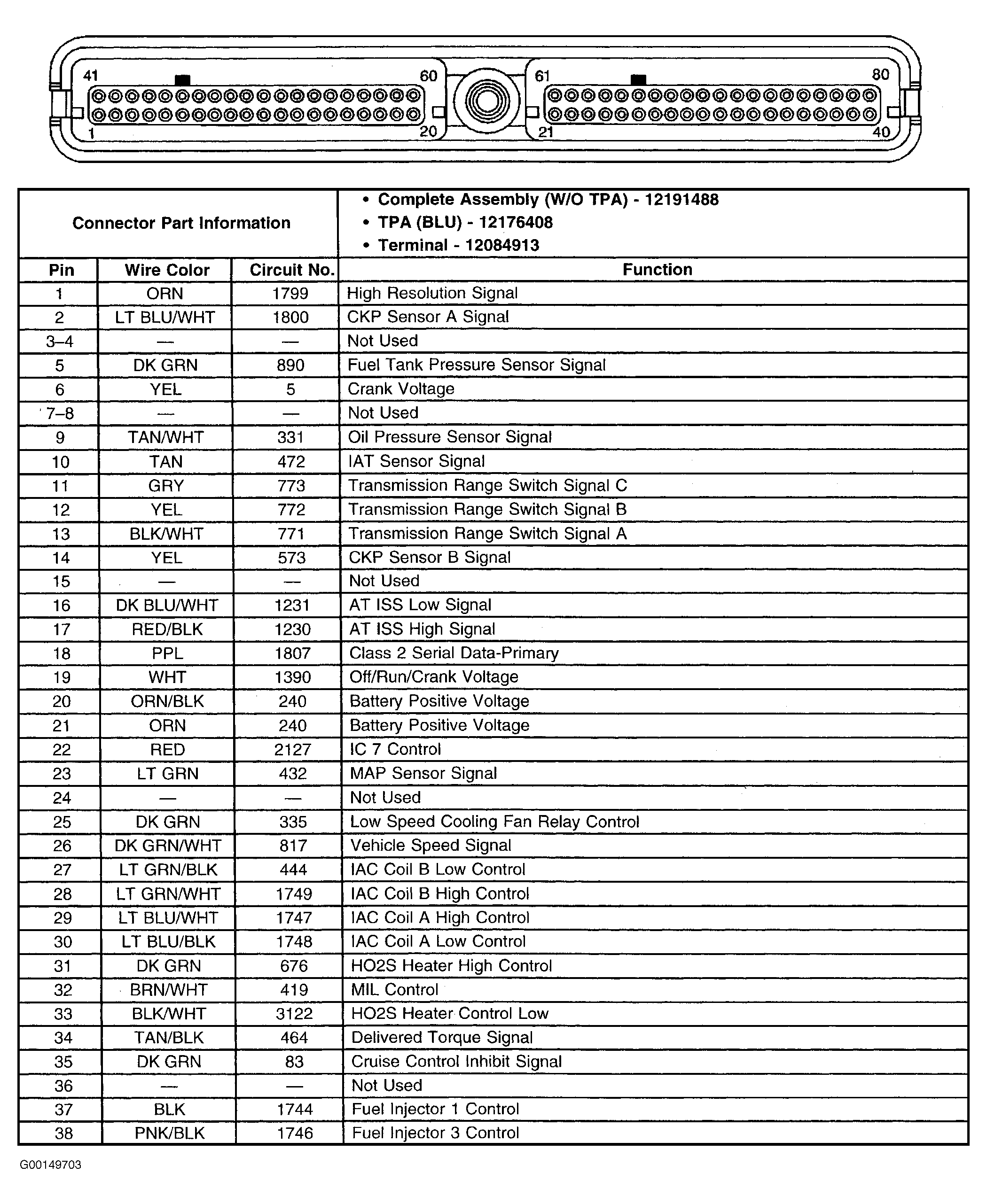 Turn ignition switch to LOCK position. Disconnect PCM and related component harness connectors. Check for open or short circuits between PCM harness connector terminal and component harness connector terminal. For connector terminal identification, see Fig 1 -Fig 4 . See WIRING DIAGRAMS . If harness is open or shorted, repair as necessary.