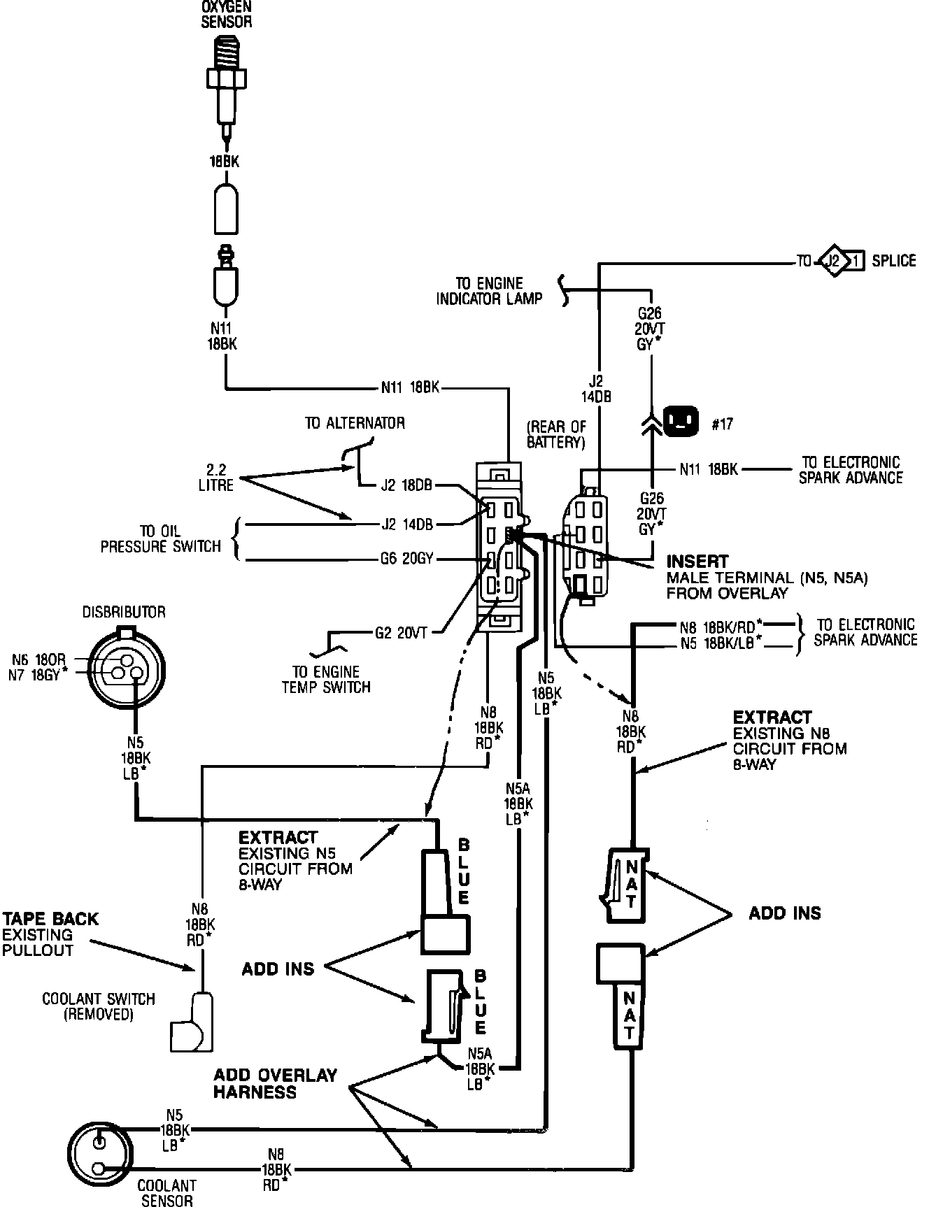 7. Extract circuit N5, #18 black/light blue terminal, from male insulator half of engine 8-way connector. Be sure terminal is clean and bright (Figure 1).