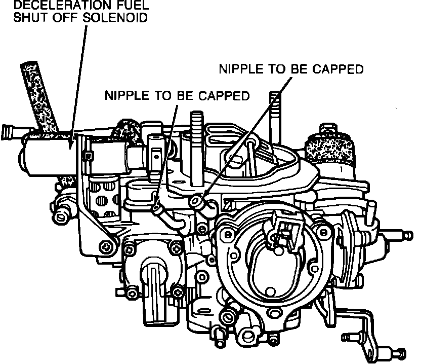 16. For manual transmission vehicles only, disable the decel fuel shutoff solenoid by disconnecting hoses to solenoid and capping the nipples on the carburetor (Figure 3).