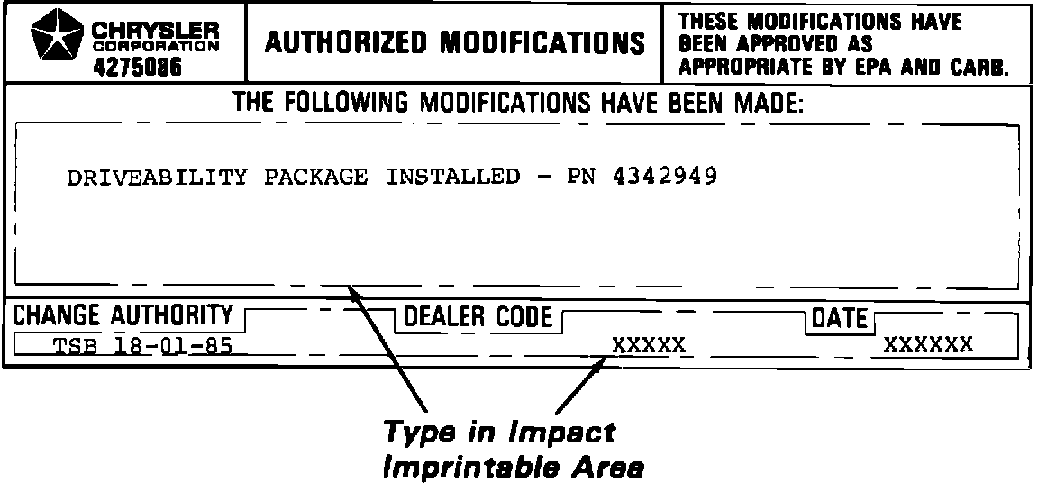 18. Type information on Authorized Modification Label, PN 4275086, as illustrated in Figure 4.