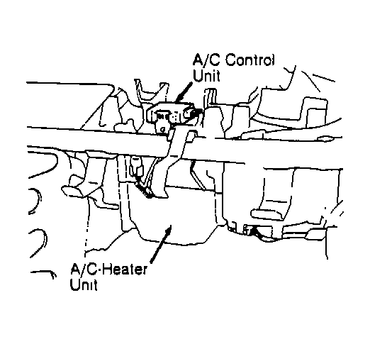 A/C control unit is located above A/C-heater unit. See Fig 1 . A/C control unit prevents idle speed from dropping due to A/C compressor load, ensuring a stable idle speed. A/C control unit sends A/C system on-off signal to ECU. When A/C is turned on and ECU receives on signal from A/C control unit, ECU commands idle speed control servo to increase idle speed to a preset RPM.