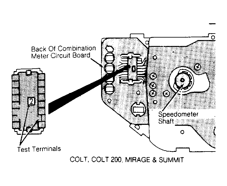 - Vehicle Speed Sensor (VSS) is located in speedometer assembly. Connect an ohmmeter between sensor test terminals on back of instrument panel. See Fig 1