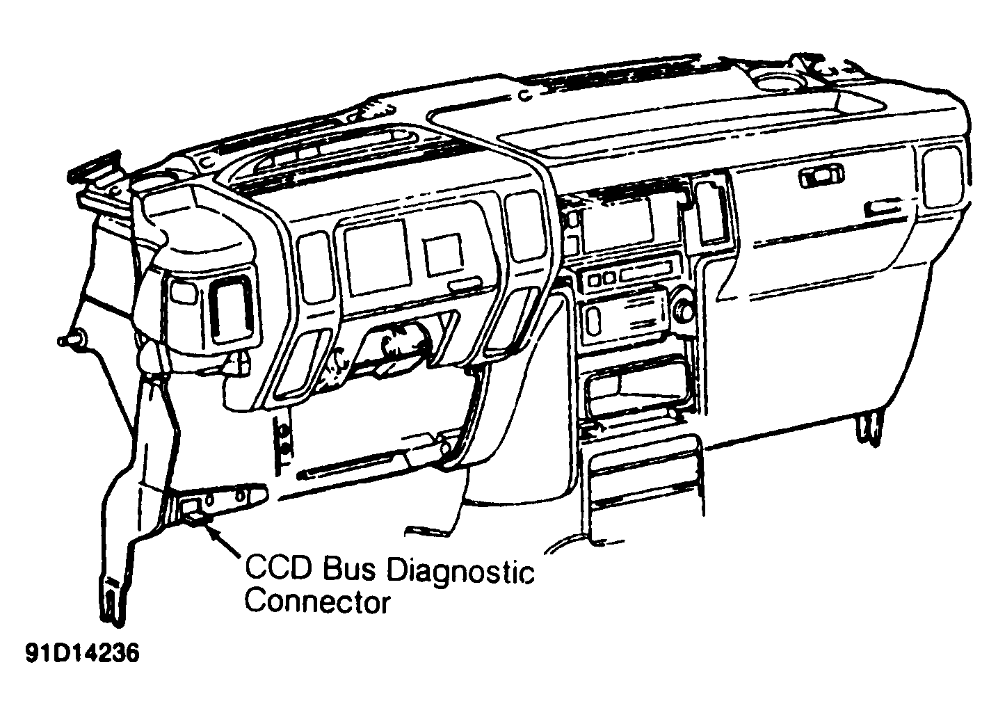 Diagnostic test procedures are designed to detect system faults as quickly as possible. Body and chassis fault codes are accessed through CCD bus diagnostic connector. CCD bus diagnostic connector is located under left side of dash. See Fig 1. DRB-II tester is used to access information from CCD bus.