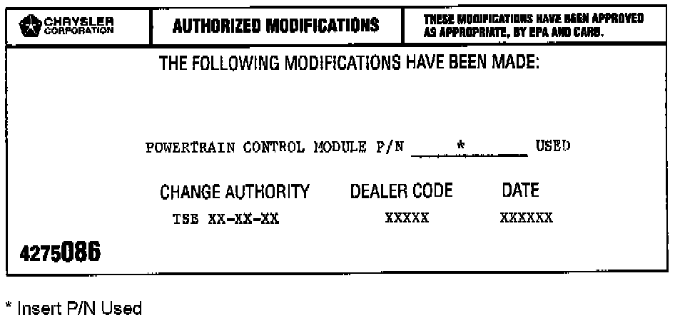 10. Type the necessary information on the "Authorized Software Update Label" P/N 4669020. Attach the label to the PCM and cover the label with the clear plastic overlay.