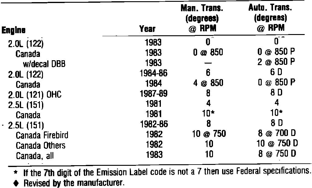 Ignition Timing: Specifications