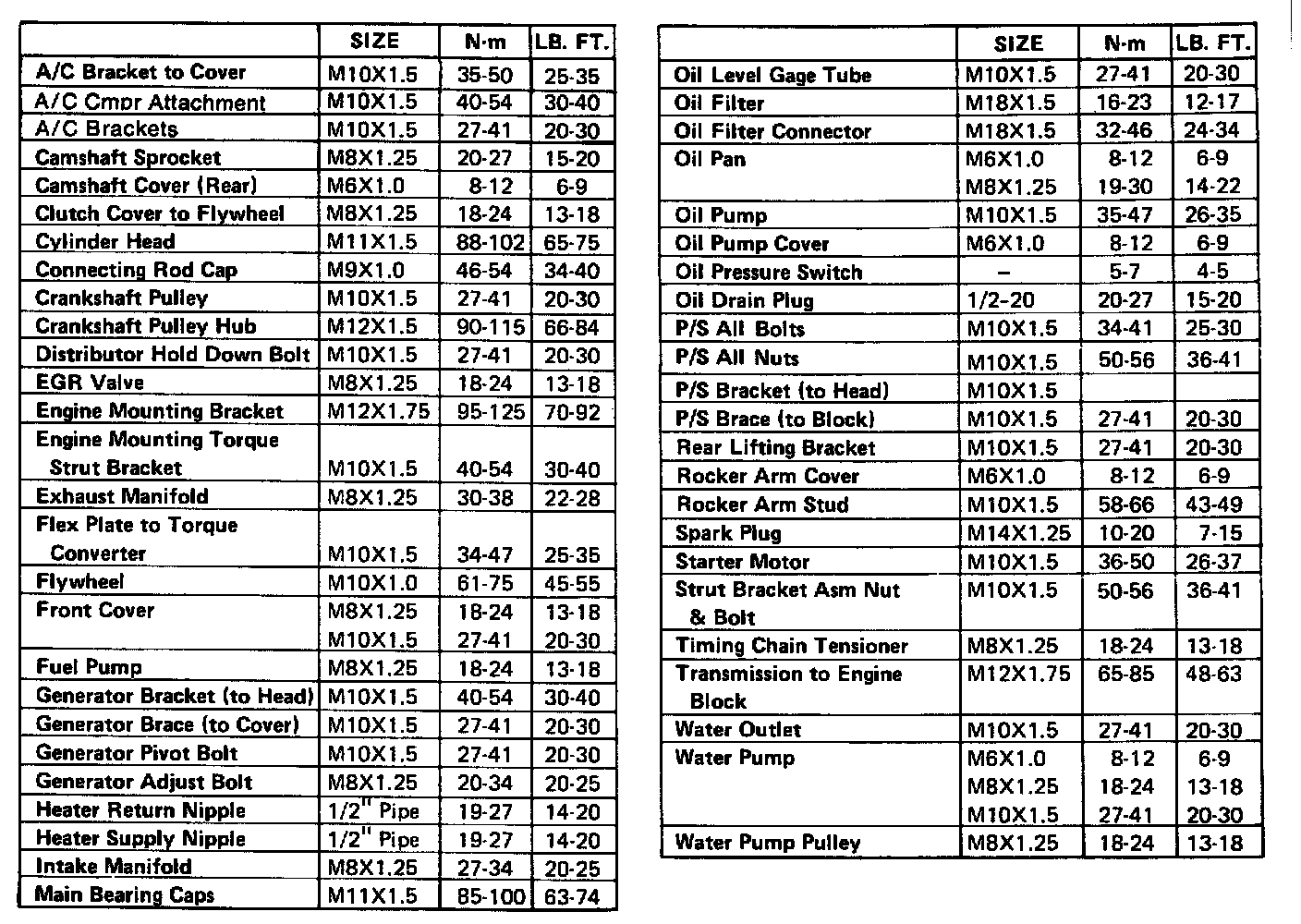 Torque Specifications:
