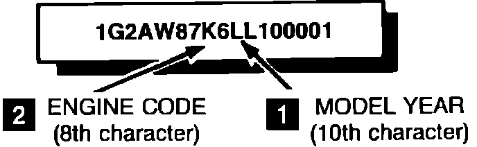 2 - ENGINE CODE LOCATION: Refer to V.I.N. plate illustration. The engine code is indicated as a letter or number.