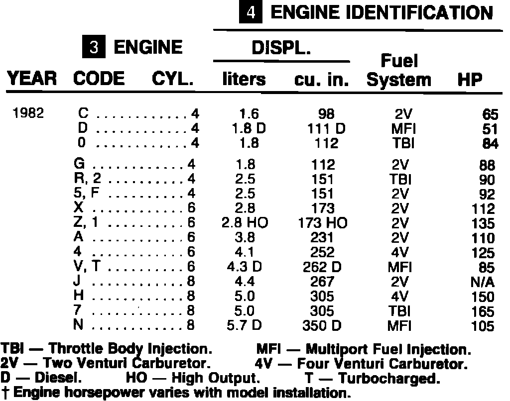 Home >> Pontiac >> 1982 >> Grand Prix V6-252 4.1L >> Repair and Diagnosis >> Powertrain Management >> Application and ID >> Engine VIN Code Identification