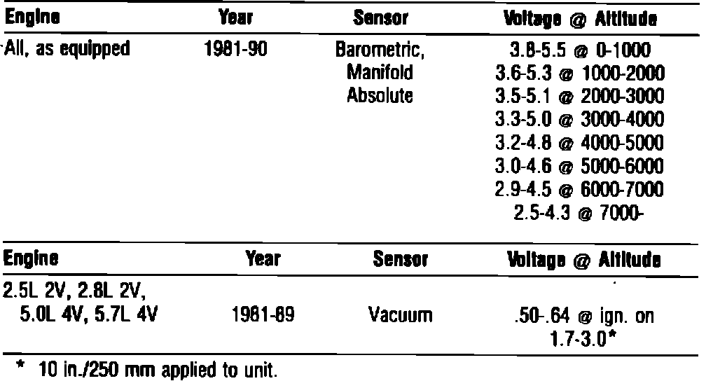 Home >> Pontiac >> 1982 >> Grand Prix V6-252 4.1L >> Repair and Diagnosis >> Powertrain Management >> Computers and Control Systems >> Barometric Pressure Sensor >> Specifications