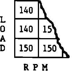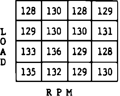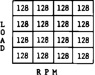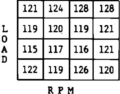 into 16 cells or blocks. See Figure 1. When the engine is operating at any given combination of rpm and load, the system would be operating in one of these blocks. The computer has a given fuel delivery stored in block. As the operating range gets into a given block, the fuel delivery will be based on what value is stored in memory in that block. Again, like the integrator, the number represents the "ON" time of the injector; therefore, the higher the number the more fuel would be delivered. Also, just like the integrator, the number 128 represents no correction to the value that is stored in that cell or block. When the integrator increases or decreases, block learn, which is also watching the integrator, will make a correction in the same direction. As the block learn makes the correction, the integrator correction will be reduced until finally the integrator will return to 128 if the block learn has corrected the fuel delivery.