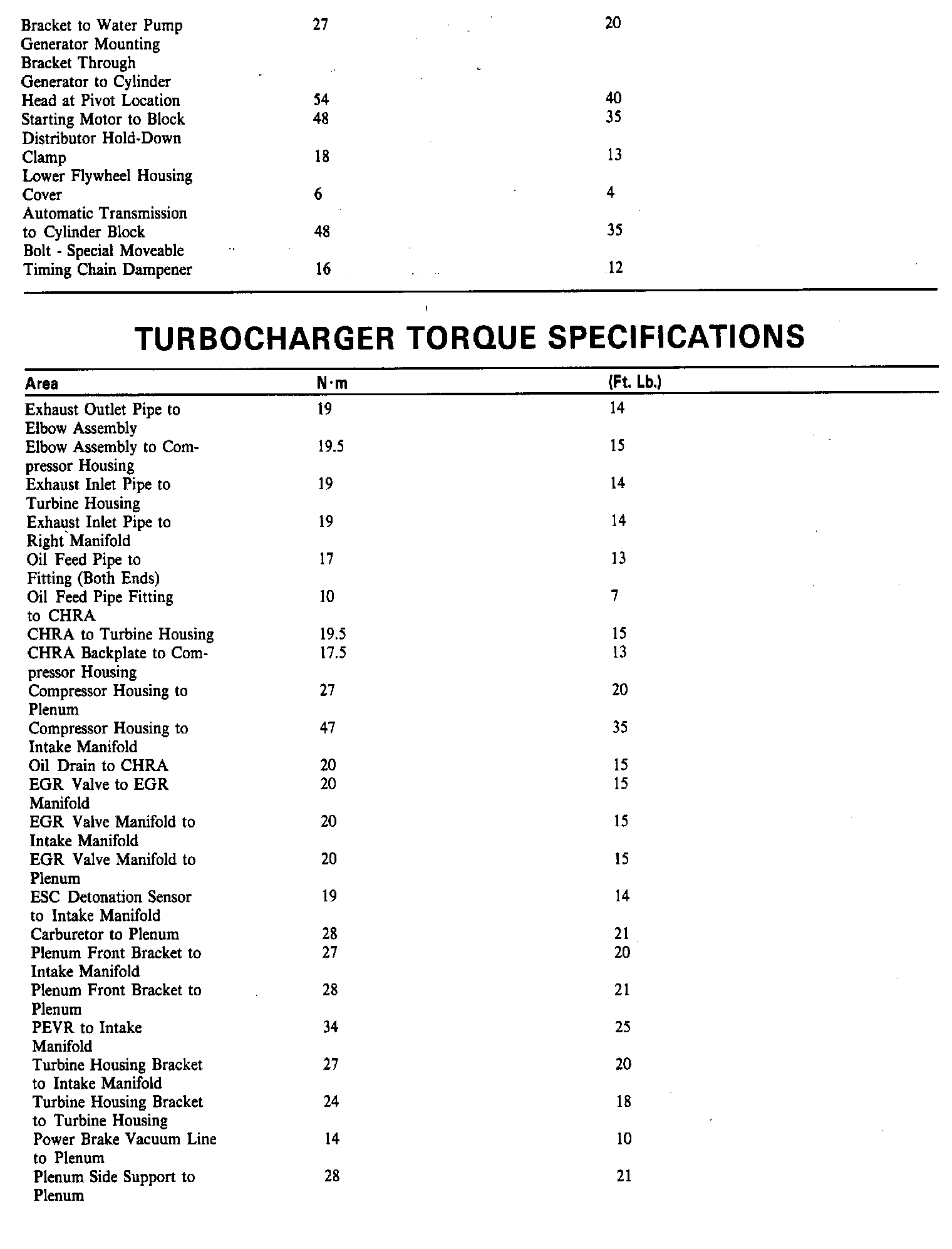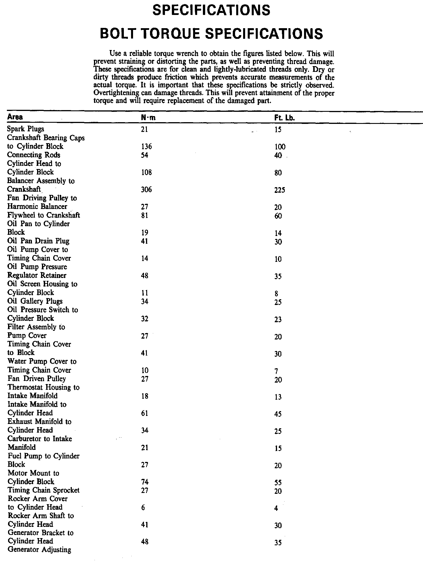 Torque Specifications: