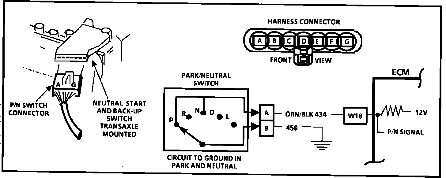 Circuit Description: The Park/Neutral switch contacts are a part of the Neutral Start switch and are closed to ground in park or neutral, and open in drive ranges.