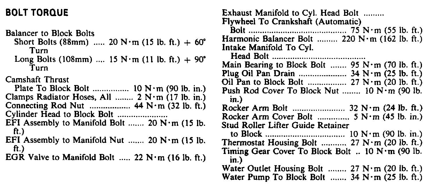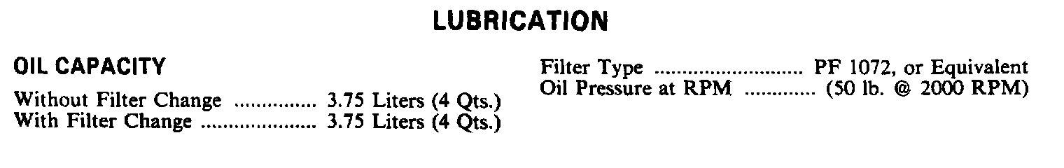 Continued Engine Specifications:
