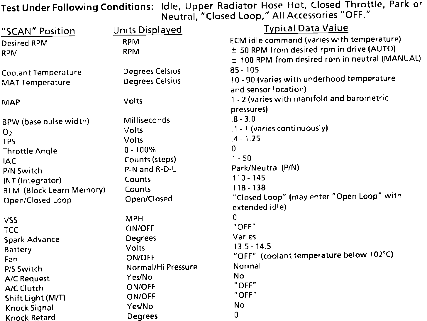 Typical Scan Values:
