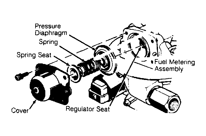 Pressure regulator cover is under heavy spring tension, remove mounting screws carefully. To prevent leaks, pressure regulator diaphragm must be replaced whenever cover is removed. See Figure