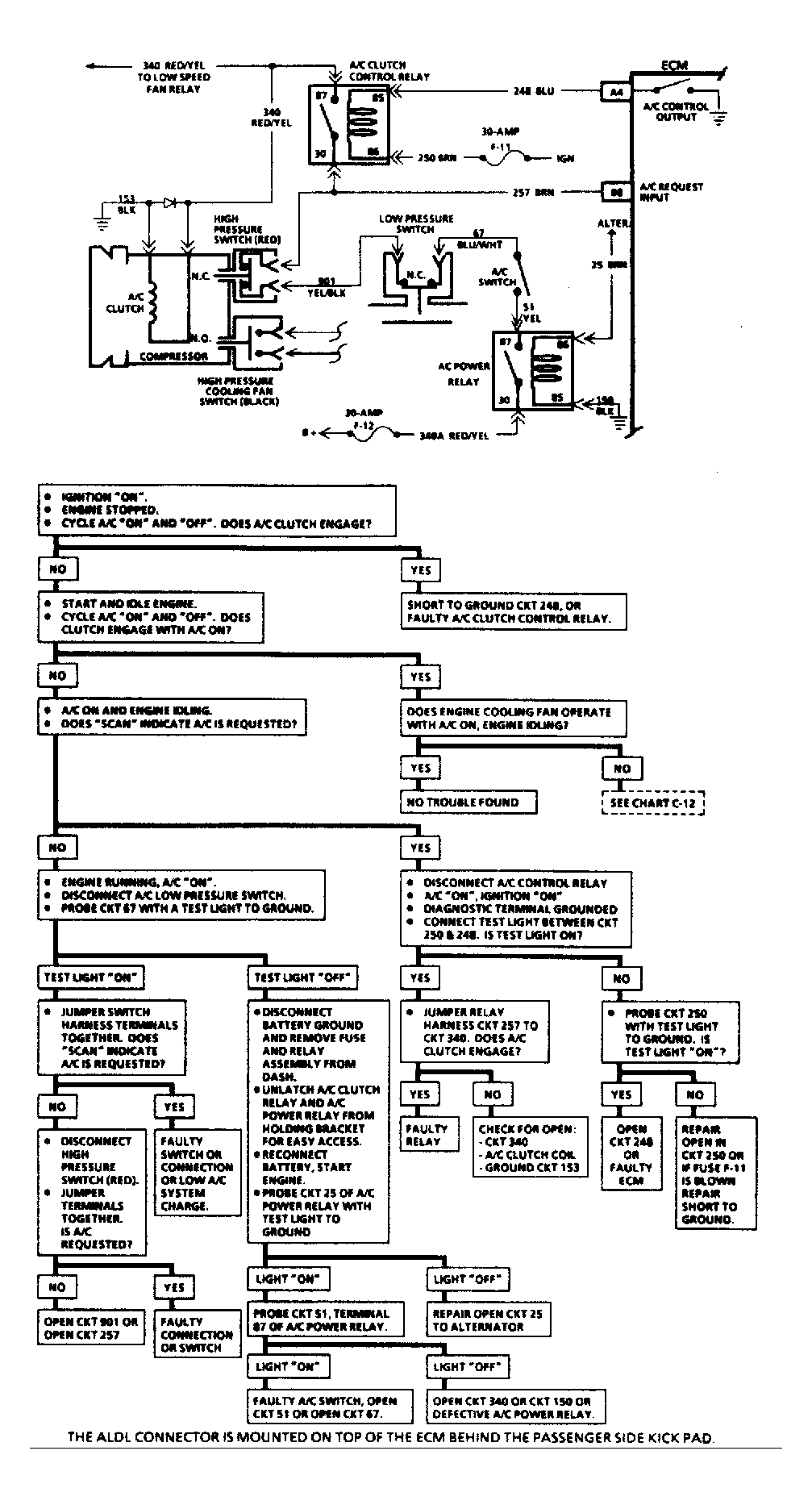 With ignition on, backprobe VSS connector and ensure 12 volts is present at Red/White/Black wire (circuit No. 439). Ensure continuity exists between Black/White wire (ground circuit No. 450) and chassis ground. Using a DVOM, monitor voltage on Brown wire (circuit No. 437) while turning drive wheels. As Hall switch pulses circuit to ground, voltage should be pulled down. See Fig 1 . If a "Scan" tester is used to diagnose this component, see Code 24 diagnostic flow chart in SELF-DIAGNOSTICS article in this section.