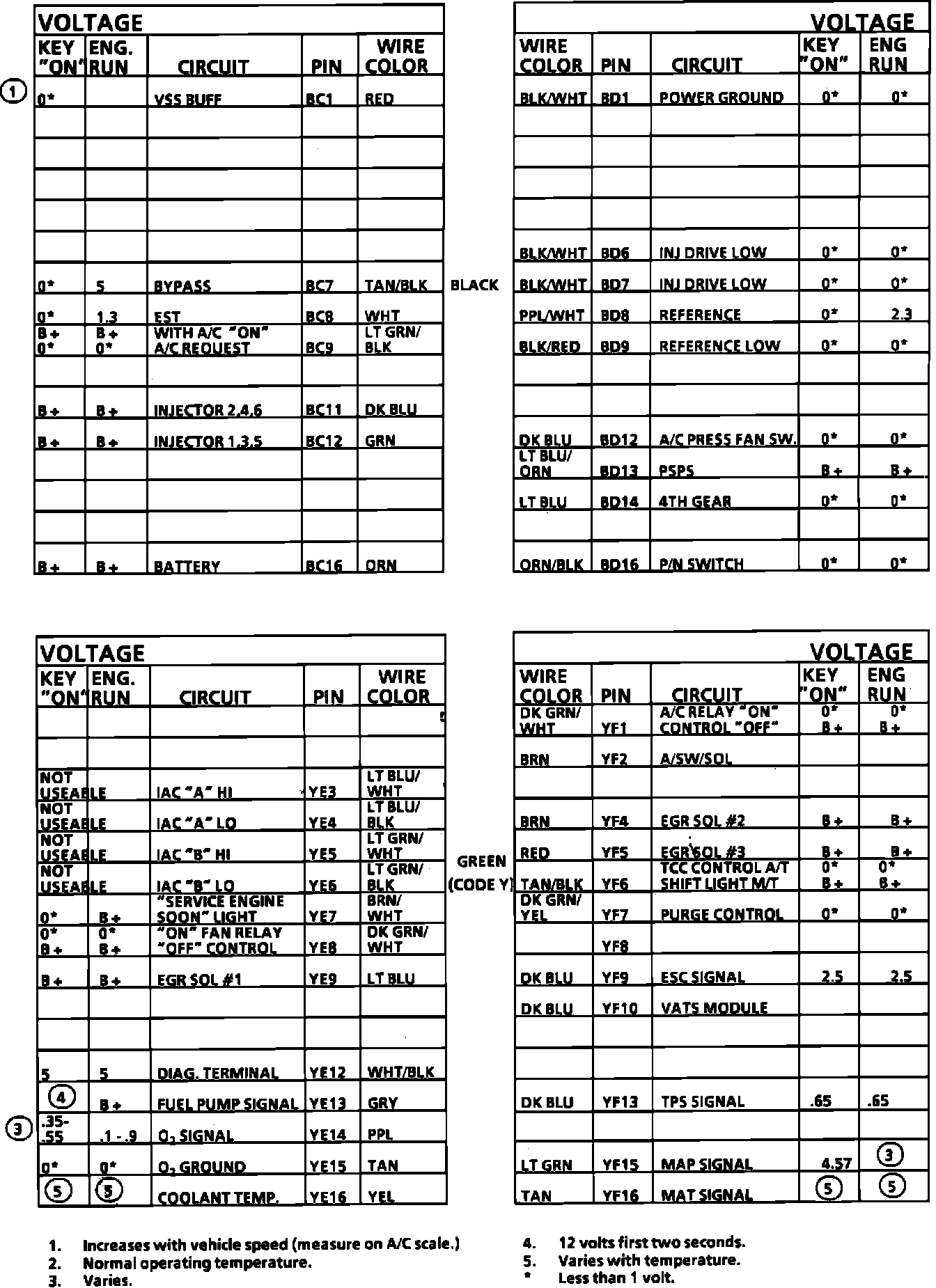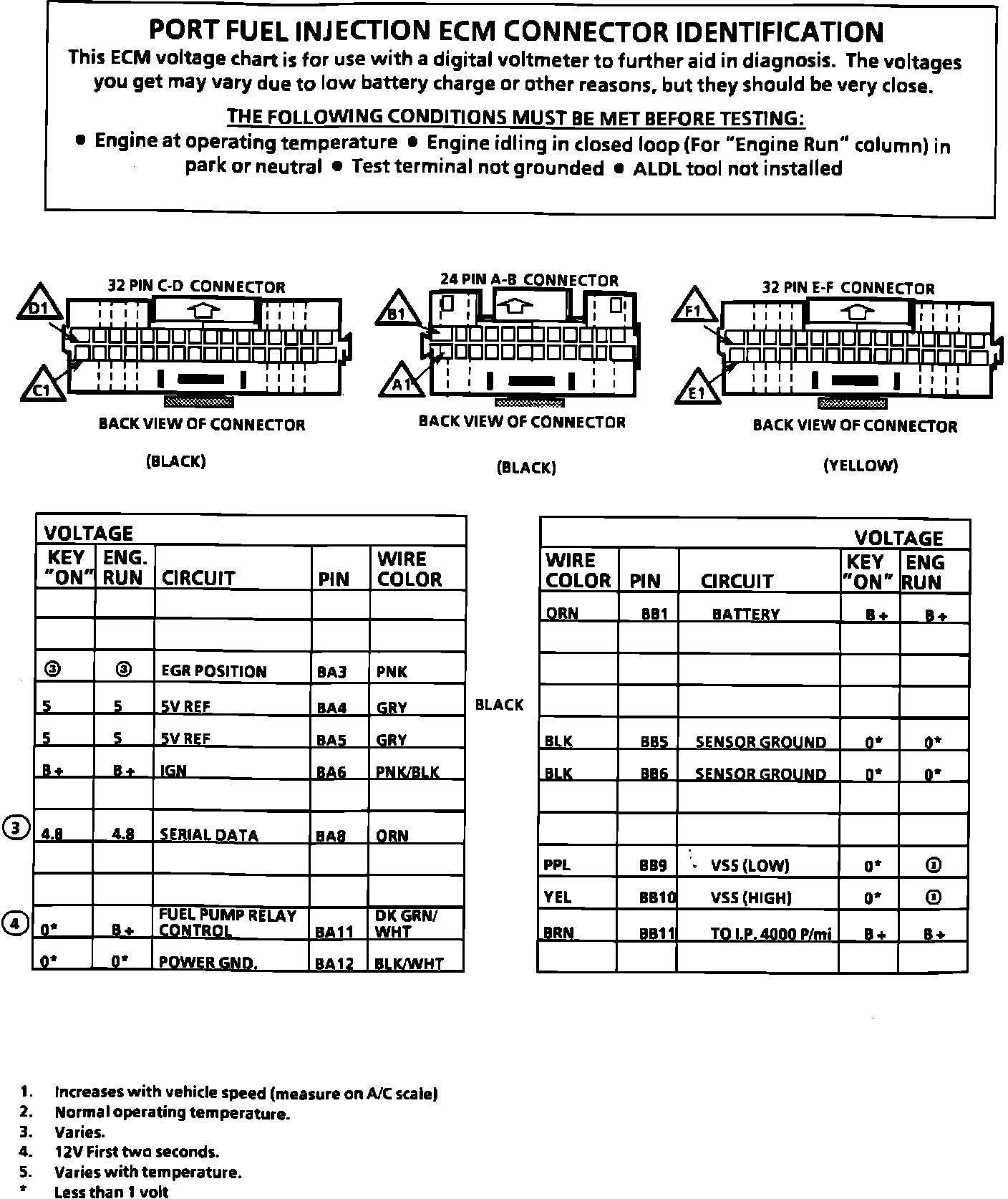 ECM Connector Terminal Identification And Voltage Specification (Part 1 Of 2):