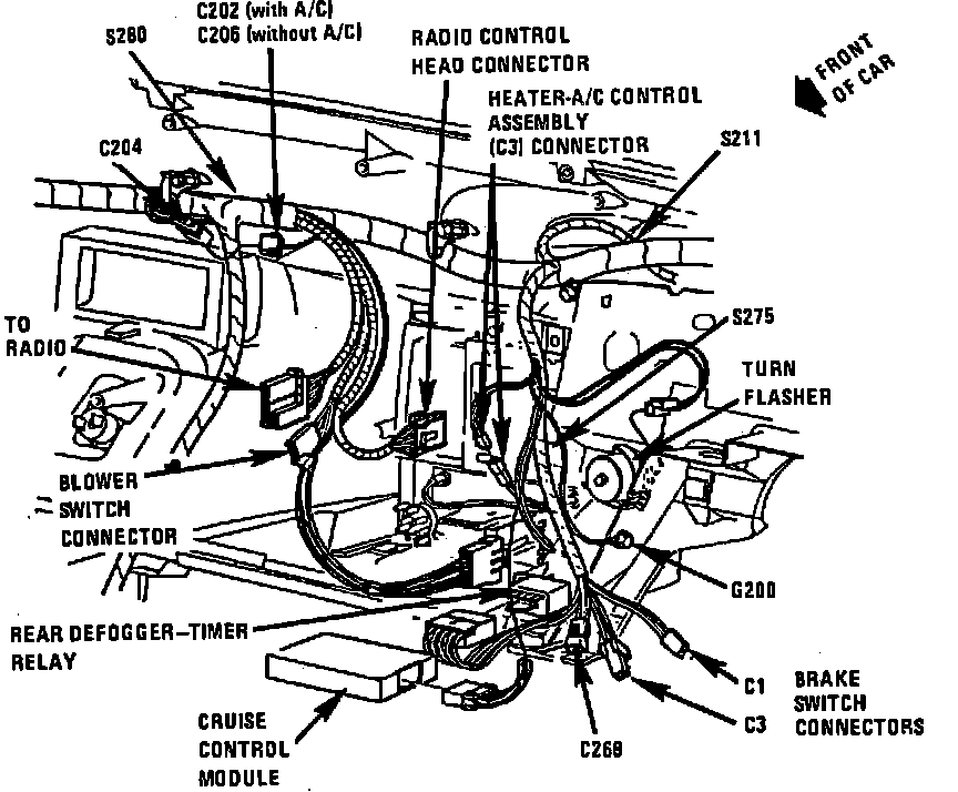 Behind I/P, Below Heater-A/C & Rear Defogger Control Assembly