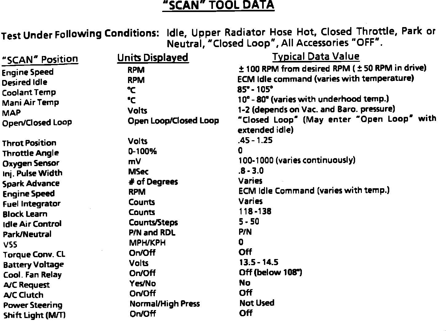 Scan Tool Data (Typical):