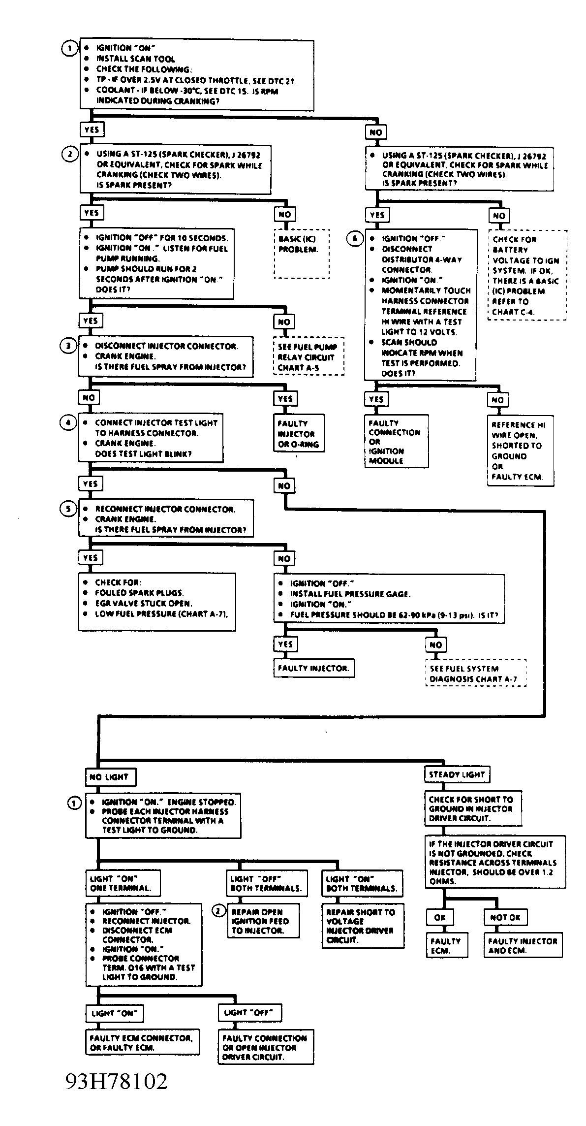 Check for spark at coil wire and at each spark plug wire with a high output spark tester. See Figure and Figure . Measure resistance of suspected wires. Resistance should be less than 30,000 ohms.