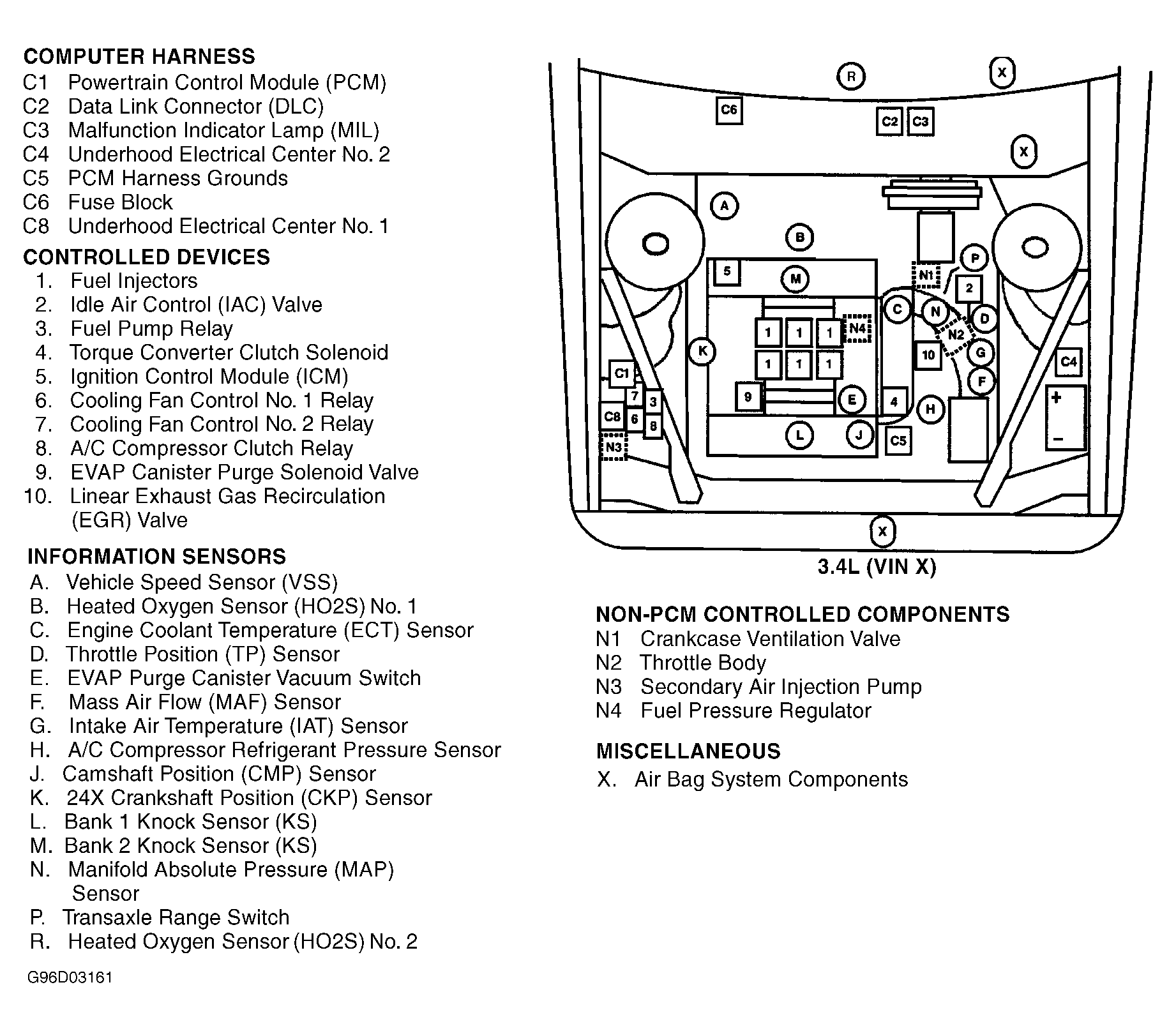 | Underhood Electrical Center No. 1 (3.4L VIN X) | Forward of right front strut tower. See Figure. |