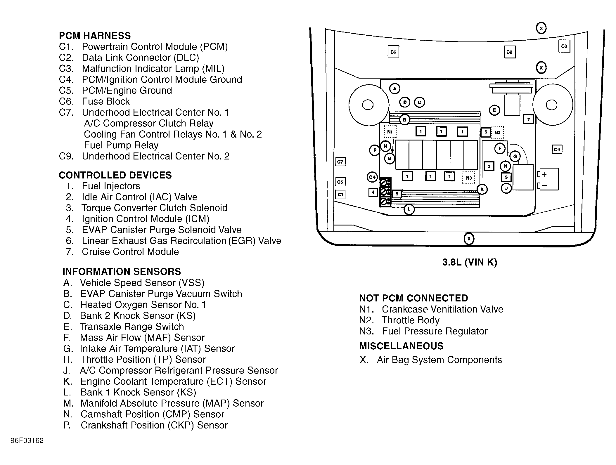 | Underhood Electrical Center No. 1 (3.8L VIN K) | Forward of right front strut tower. See Figure. |
