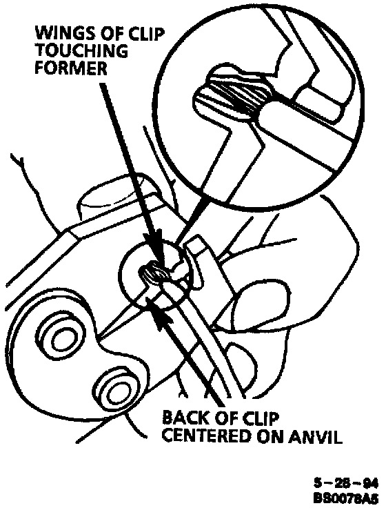 ^ Center the back of the splice clip on the proper anvil and close the crimping tool to the point where the former touches the wings of the clip.