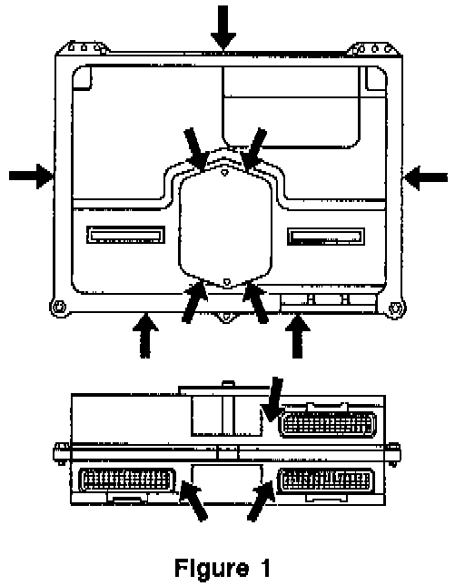 3. Apply GE Goodwrench RTV Silicone Sealer (P/N 01052915) to the entire sealing area and case joint of the PCM. (See arrows in Figure 1).