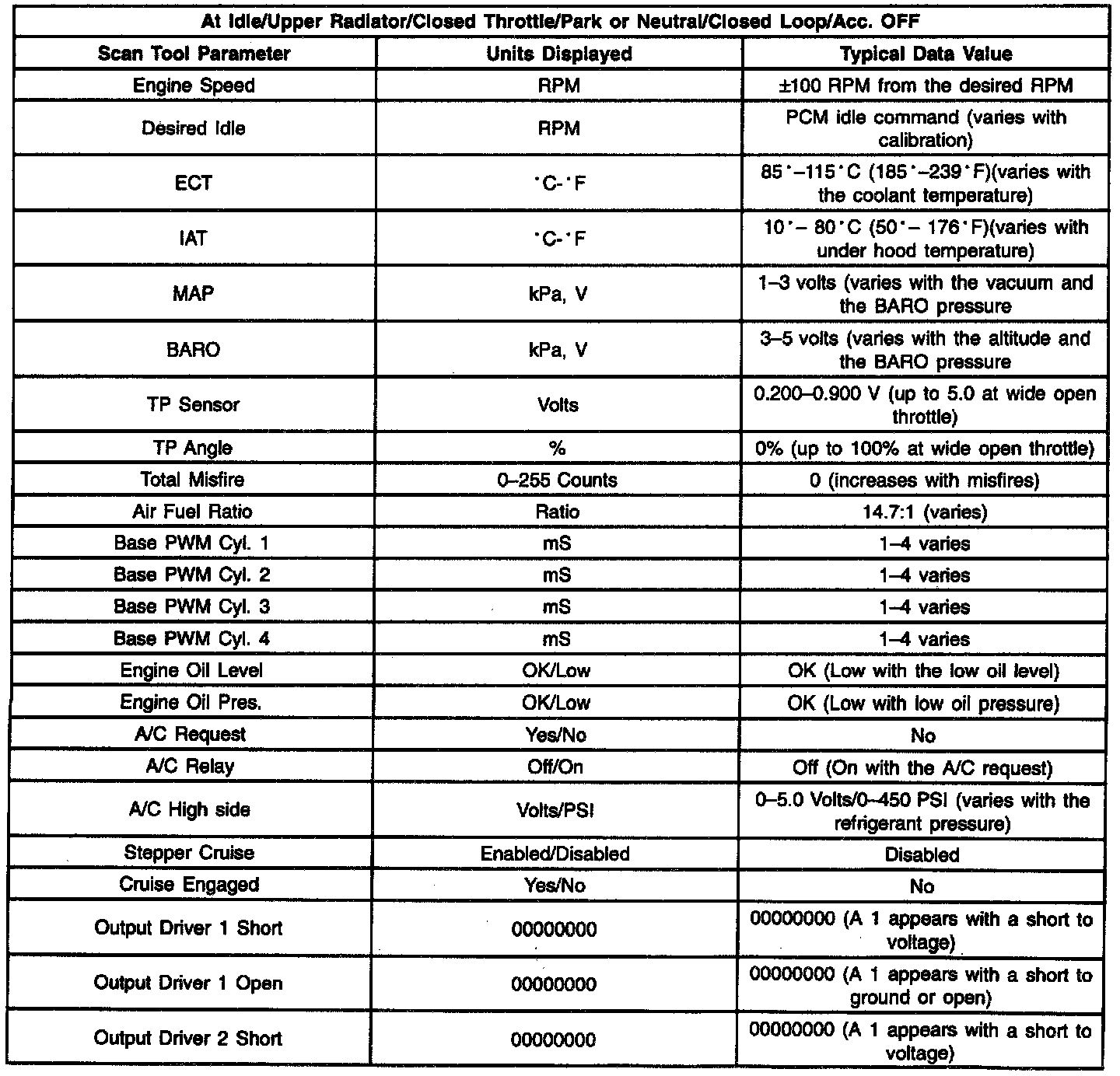 Scan Tool Data List