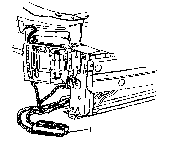 7. Slide the PCM and the retainer (1) from the PCM bracket (2).