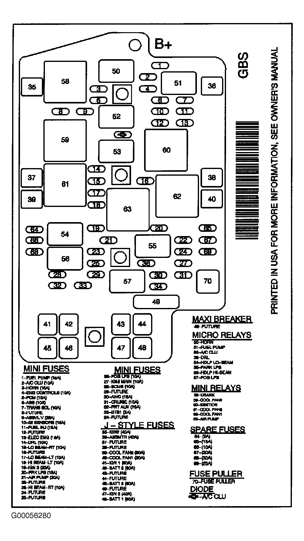 | Underhood Fuse Block | In Front Of Right Wheelwell, Above Battery |