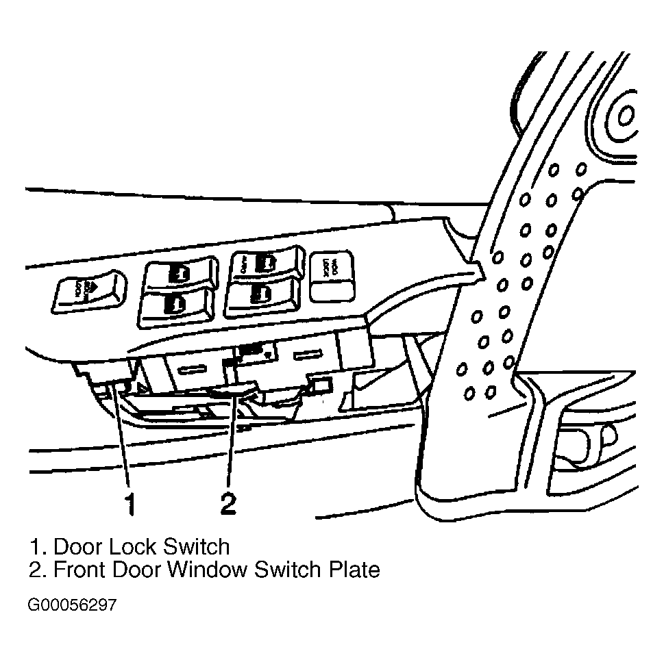 1. Install front door window control switch (2) into front door window switch plate. See Fig 1 .
