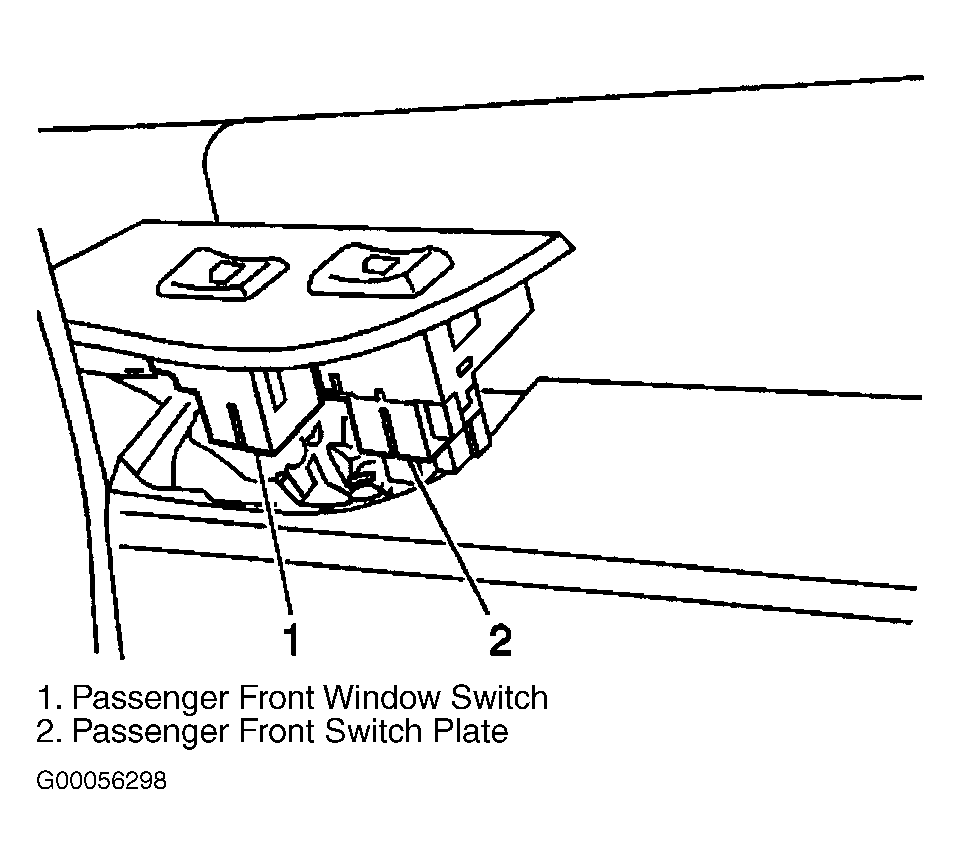 - Install passenger front door window switch (1) into front door window switch plate pressing into place until fully seated. See Fig 1 .
