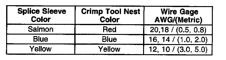 5. Select the proper splice sleeve (2) and the required crimp nest tool, refer to the Crimp and Seal Splice Table.