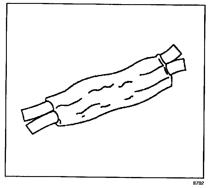^ Ensure that each splice is at least 40 mm (1.5 in) away from other splices, harness branches and connectors. This helps prevent moisture from bridging adjacent splices and causing damage.