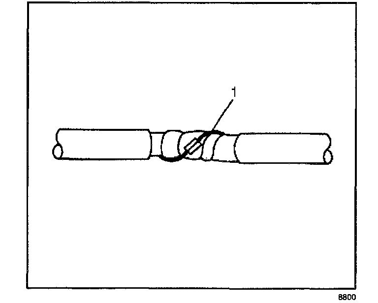 1. Remove the outer jacket (1). Use care not to cut into the drain wire of the mylar tape.