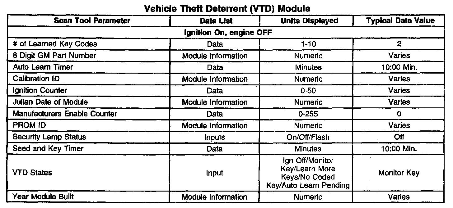 Scan Tool Data List - Antitheft System